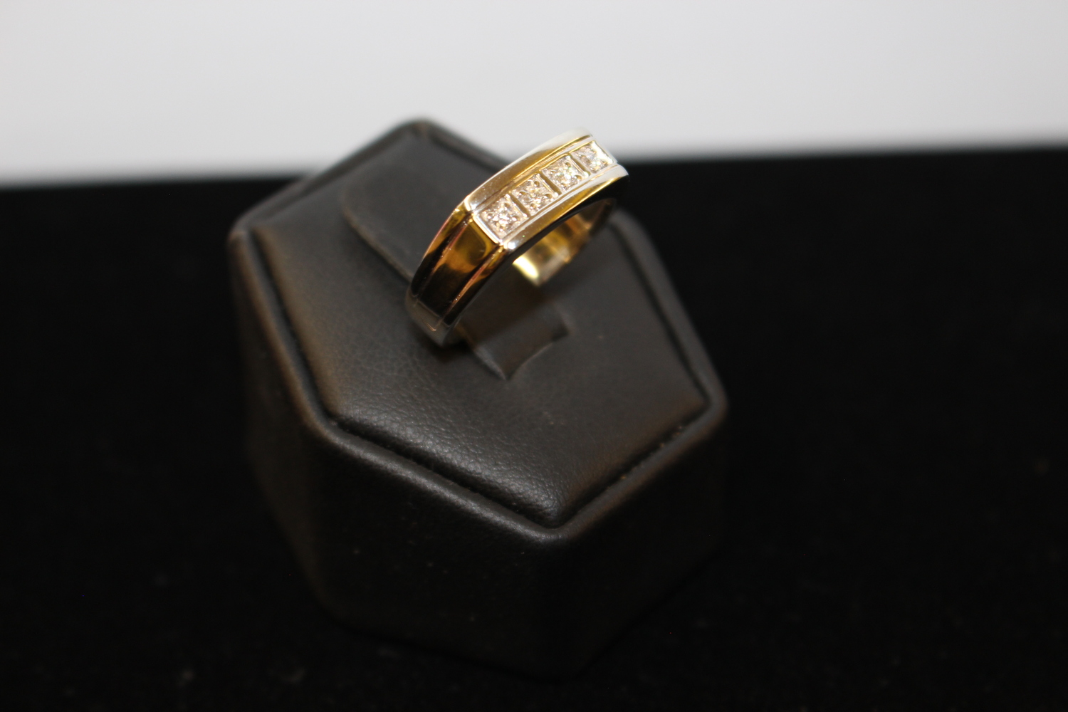 This refined 14 karat white gold ring features four sparkling diamonds set securely across the band in a clean, modern design. The sleek white gold finish enhances the brilliance of the diamonds, giving this piece a timeless, elegant look that’s perfect for any occasion.
