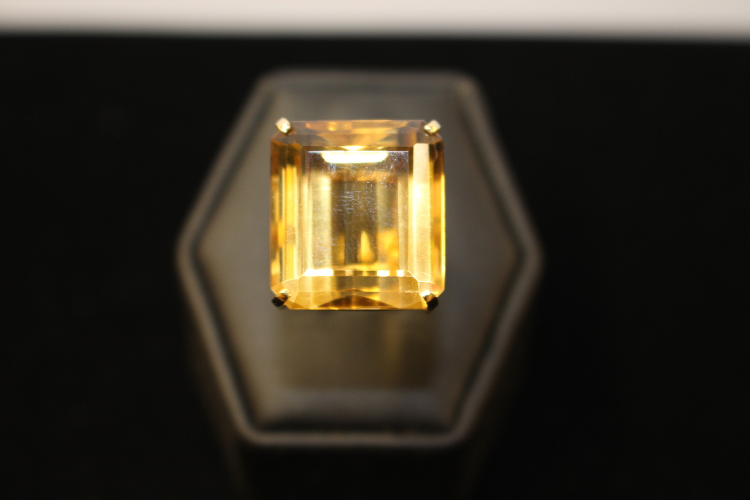 Stone: Square-cut golden gemstone (centerpiece)